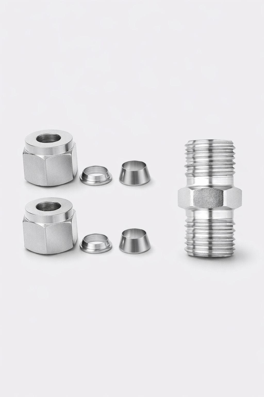 Обжимной цанговый переходник для трубки 8 мм из нержавеющей стали AISI 304 предназначен для быстрого и надёжного соединения металлических трубок без сварки и пайки. Цанговый обжим обеспечивает прочную фиксацию и высокую герметичность соединения, устойчивую к давлению, вибрациям и перепадам температуры.